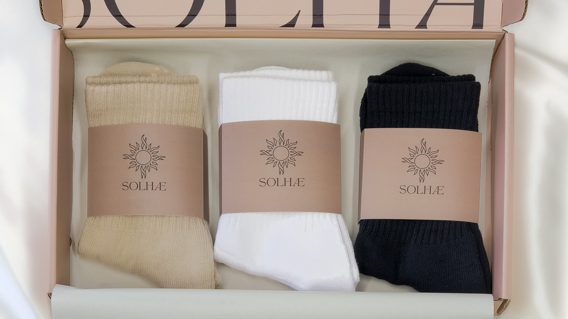 The SOLHÆ Essential Set is a curated trio of premium grip socks - minimal in design, luxurious in feel.